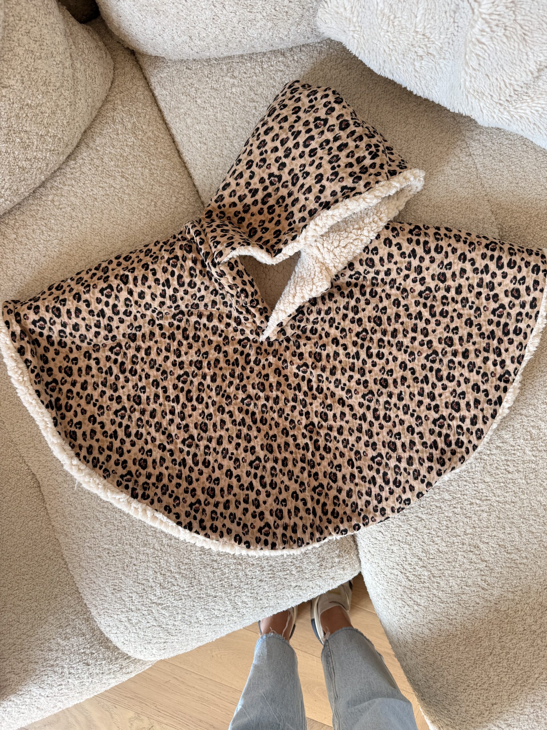 Réalisé en double gaze de coton sur l’extérieur et Sherpa à l’intérieur. Il va remplacer entièrement le manteau. Les manches tombent jusqu’aux poignets de bébé.